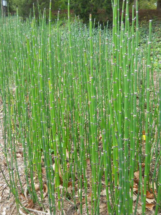 Horsetail is particularly difficult due to its structure. A prehistoric plant, it has adapted well to survive. It has non-penetrable membrane – a waxy coating – before treating it needs to be cracked or crushed to absorb whatever is applied. The stems are split in segments so if a small piece is left, the weed just re-establishes itself. It usually afflicts narrow cracks, broken paving and undisturbed land.